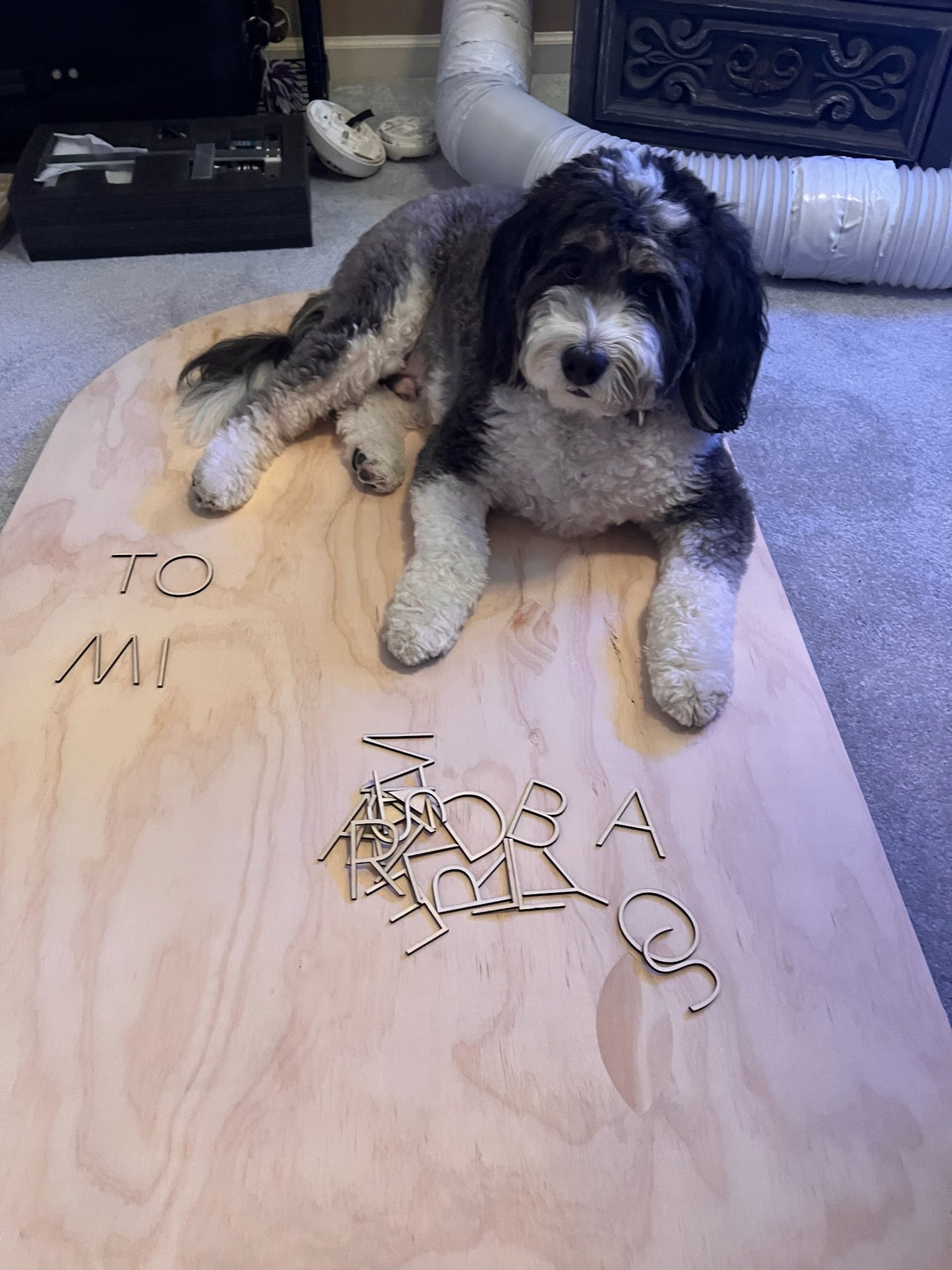 Bear is our 3 year old Bernedoodle, the self-proclaimed CEO of Wish Upon A Wall. He loves to get his 'paws' in every project we do!